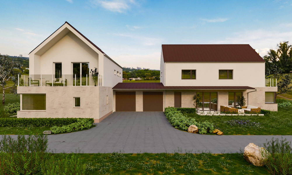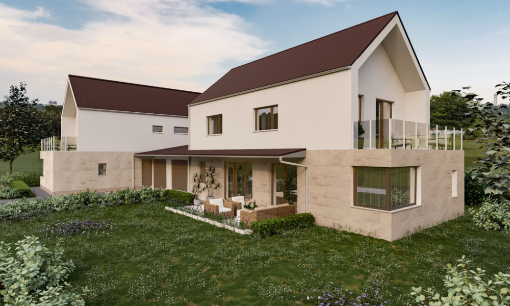 Az ikerház 1.285nm-es telken épül szép környezetben.